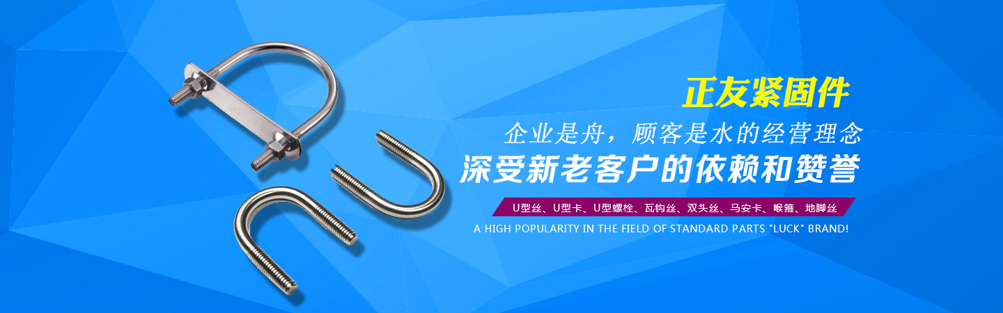 河北正友緊固件制造有限公司(原永年縣河北鋪天緣緊固件廠)坐落在永年縣河北鋪工業(yè)區(qū),地理位置優(yōu)越,交通便利。自1994年建廠至今,在各界人士的關(guān)懷和新老客戶的擁護(hù)及全廠員工的努力下,企業(yè)日益發(fā)展壯大,產(chǎn)品不斷更新,以U型絲、U型卡、U型螺栓、瓦鉤絲、雙頭絲、馬安卡、喉箍、地腳絲等產(chǎn)品的過硬質(zhì)量,創(chuàng)下在標(biāo)準(zhǔn)件領(lǐng)域知名度較高的“正友”品牌! 為答謝新老客戶長期以來對我廠的幫助與信任,我廠在提高質(zhì)量的同時(shí),更是加強(qiáng)了產(chǎn)品售后服務(wù)的力度!以“企業(yè)是舟,顧客是水”的經(jīng)營理念,鑄就“正友”日后的輝煌之路!